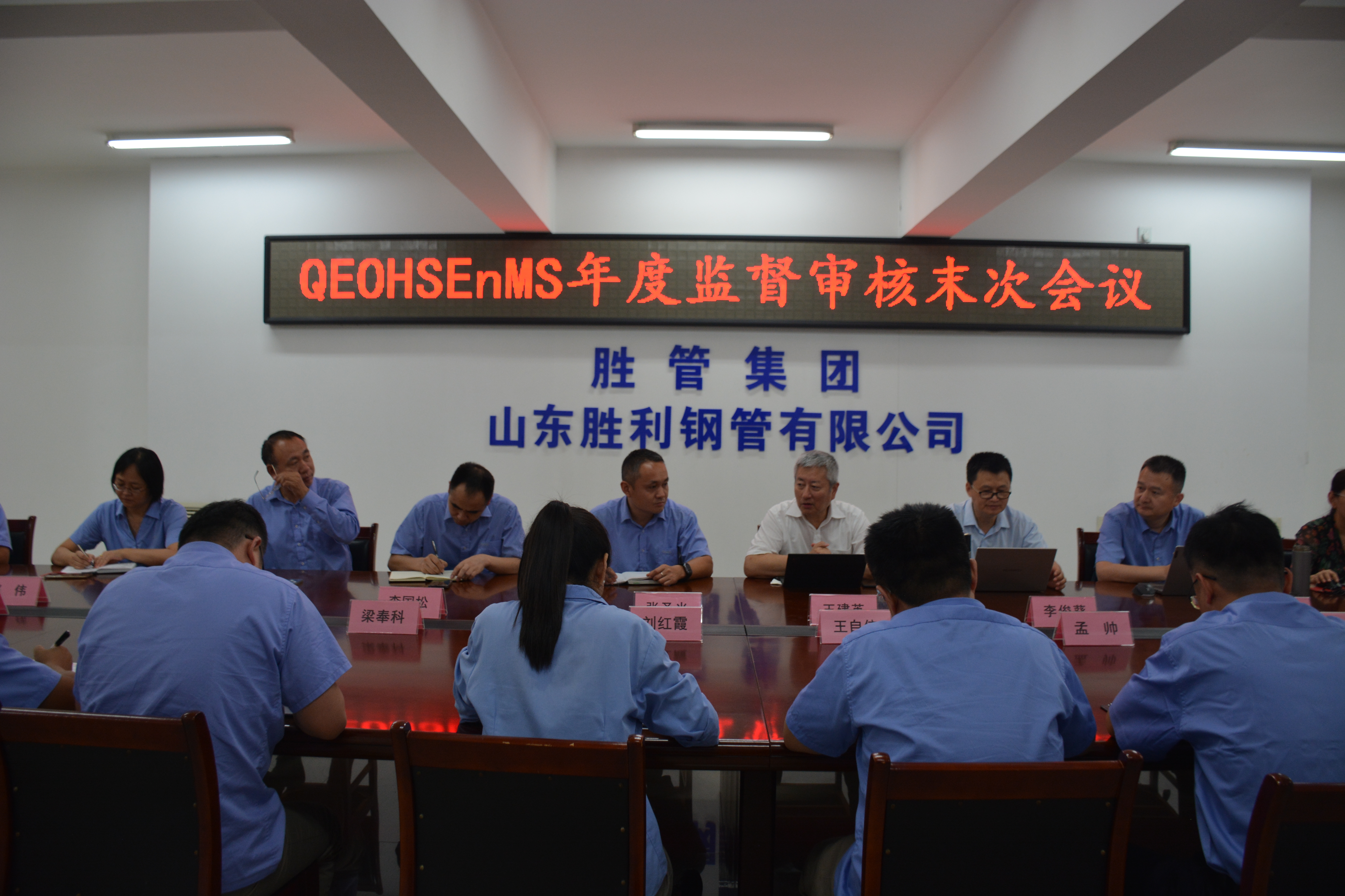 2025 年 9 月1 日 ~9 月 3 日 , 中國船級社質(zhì)量認(rèn)證公司四位審核專家對山東勝利鋼管有限公司進(jìn)行了為期 3 天的 QEOHSEnMS 年度監(jiān)督審核,本次審核是公司能源管理納入公司體系后的首次整合認(rèn)證審核。在集團(tuán)、公司領(lǐng)導(dǎo)的統(tǒng)籌安排和各單位的積極配合下, 公司順利通過了QEOHSEnMS 年度監(jiān)督審核工作。