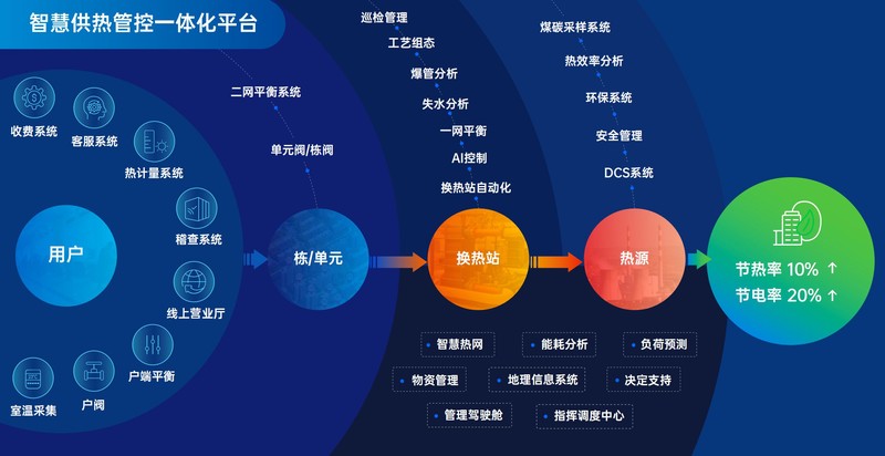 采用目前主流的分布式架構(gòu),結(jié)合大數(shù)據(jù)、人工智能算法等先進(jìn)技術(shù),生成AI模型,自動(dòng)控制熱網(wǎng)系統(tǒng)運(yùn)行,并不斷自我學(xué)習(xí)優(yōu)化,實(shí)現(xiàn)按目標(biāo)精確供熱。智慧熱網(wǎng)平臺(tái)能通過對(duì)熱源、換熱站、室內(nèi)溫度、室外溫度的數(shù)據(jù)采集使用AI算法構(gòu)建多種人工智能模型,構(gòu)建源、網(wǎng)、站、戶四個(gè)節(jié)點(diǎn)端到端之間的多維度管控體系。對(duì)熱源參數(shù)預(yù)測(cè),換熱站自動(dòng)調(diào)控,進(jìn)行綜合性運(yùn)算并自動(dòng)托管,從根本上解決傳統(tǒng)人工調(diào)控不及時(shí)且無法對(duì)數(shù)據(jù)完全掌控而造成能源的浪費(fèi)。